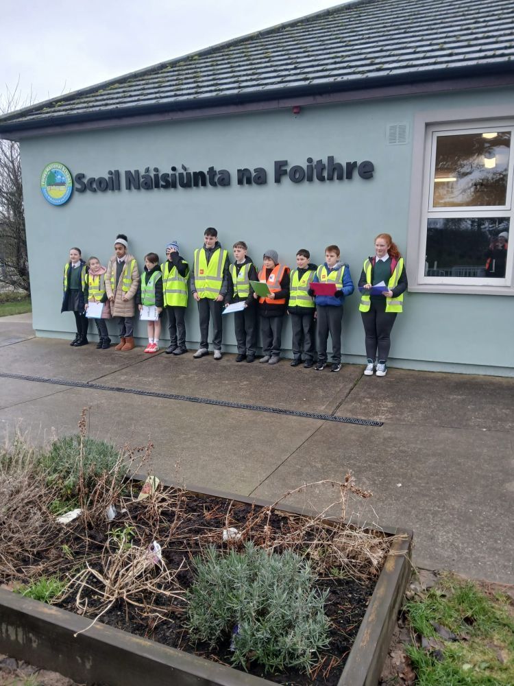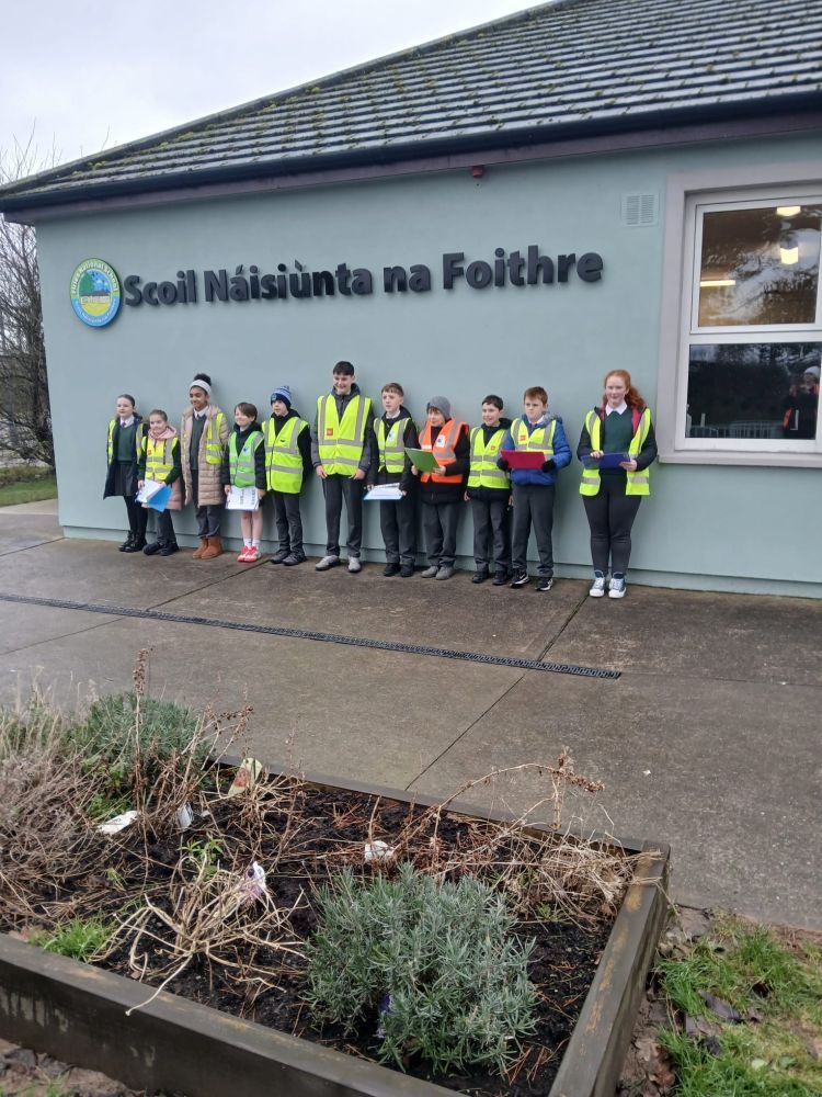 Firies National School is working on their next Green Flag with the theme of – Global Citizenship Travel. As part of this initiative, Angela Wall from Green School visited our school on Friday 23rd January. Angela met with our Green Schools committee. We carried out a Walkability Audit in the area surrounding the school near the regional road. The children were investigating the positive and negative areas and where we need to carry out work in order to make our school a safe environment for travelling to and from every day. We have a huge issue with parking so we are hoping we can receive assistance in order to alleviate this problem. Angela will visit us again on Tuesday 17th February with the findings of this survey.